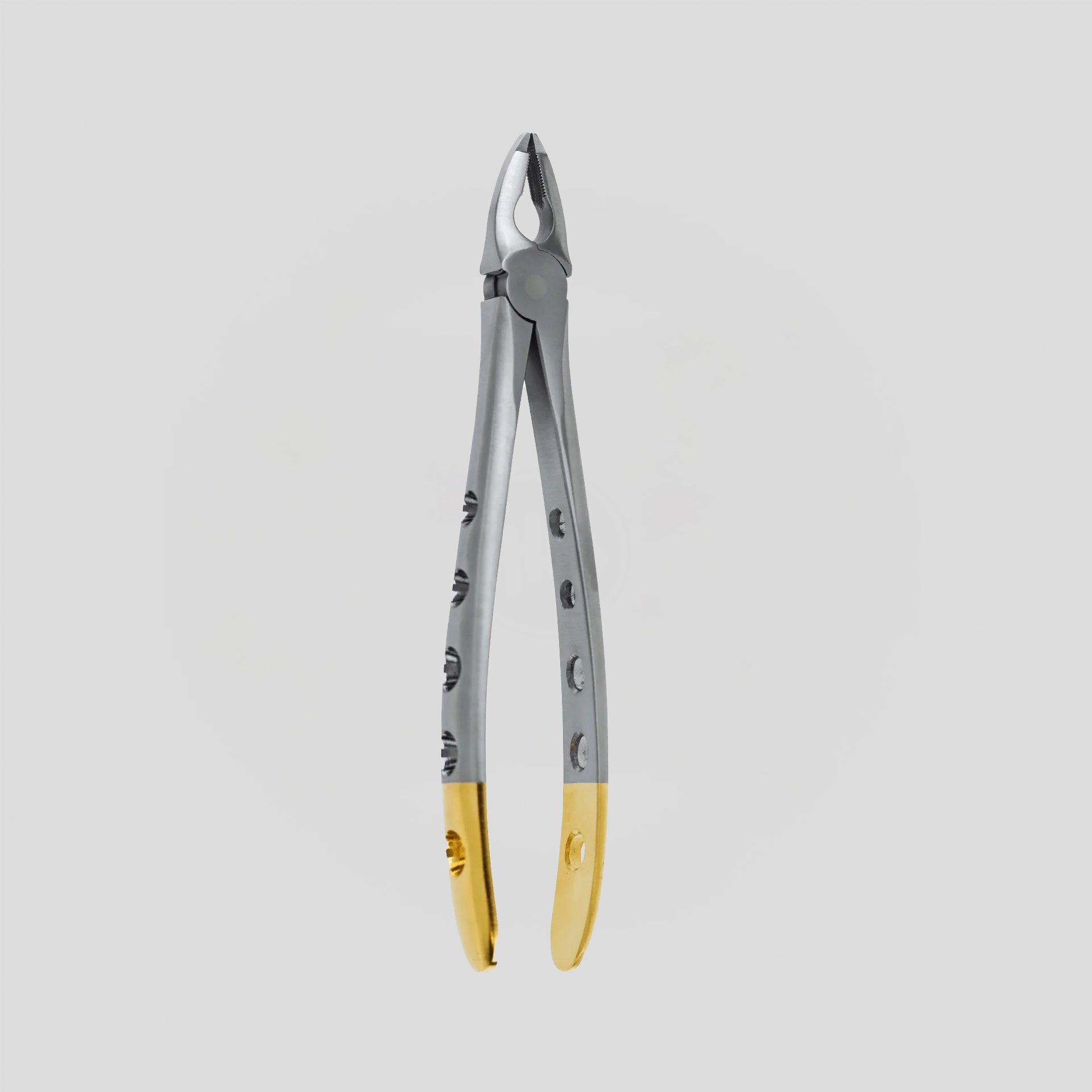 F3 Upper Anterior Forceps are used for extracting teeth in the upper anterior region. Beveled beak design enables sliding the beaks below the gum line to engage both crown & root.