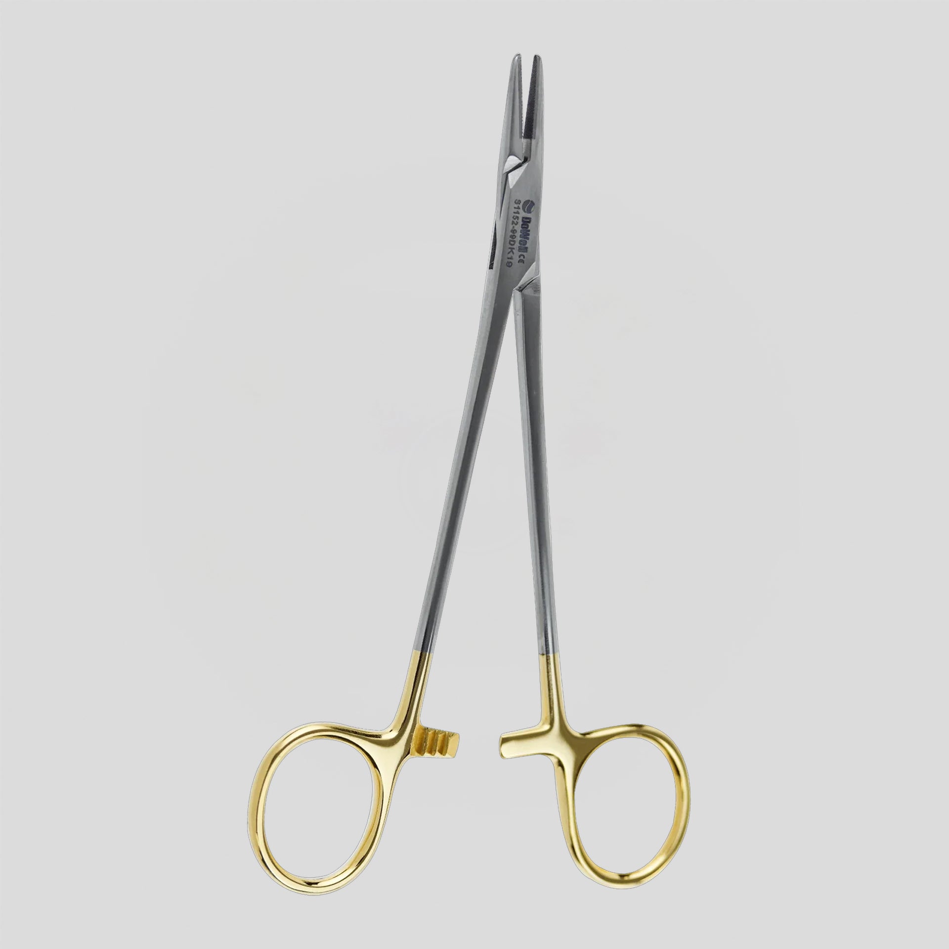 Crile Wood Surgical needle Holder- Straight (15Cm) made of Tungsten Carbide tips is used to grasp and guide the needle when suturing.